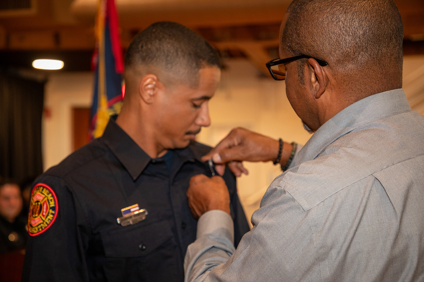 During the ceremony, Mayor Keith A. James and Fire Chief Diana Matty congratulated the new firefighters as family members and friends took part in the traditional badge pinning.