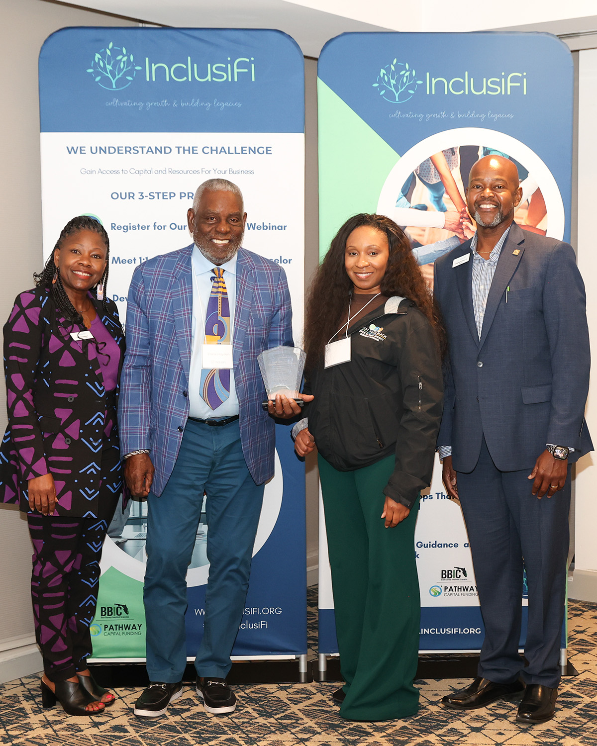 In on the presentation are, from left, Pamela Stewart, president and CEO, InclusiFi, Frank Hayden, Director, Office of Small Business Programs, Laquoya Green, Small Business Programs compliance specialist, and Charles W. Keys III, InclusiFi Chairman of the Board. (Photo provided by InclusiFi)
